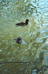 雨上がりだった事もあり、木のベンチには、ちょっとした水たまり。