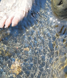 川でこんな風に足をつけるのは、